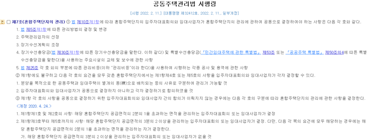 공동주택관리법 시행령을 보면 입주자대표회의와 임대사업자(SH공사)가 혼합단지 관리에 관한 사항을 함께 결정할 수 있되, 상호 간에 합의가 이뤄지지 않을 경우 혼합주택단지 공급면적의 2분의 1, 혹은 3분의 2 이상을 관리하는 측이 결정하게 되어 있다.