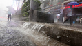 서울 도심에 폭우가 내린 오후 시간. 지하철역 주변 맨홀에서 물이 역류해 나옵니다.