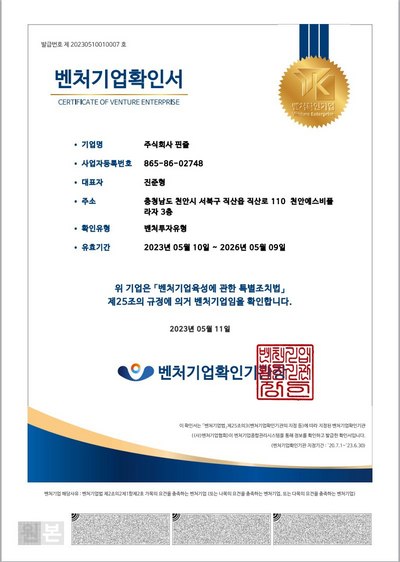 주식회사 핀즐, 벤처투자유형으로 벤처기업 인증 획득