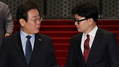 네. 대표적으로 한 대표는 이 대표 면전에서 수사 검사에 대한 탄핵시도가 곧 나올 판결 결과 불복을 위한 빌드업이라고 표현하기도 했는데, 해당 발언 때 이 대표는 다른 곳을 응시하기도 했습니다. 반면, 이 대표는 한 대표에게 제3자 특검법과 관련해 "이제는 결단해달라"고 직설적으로 표현했는데요. 한 대표는 어색한 미소를 지어보였습니다.