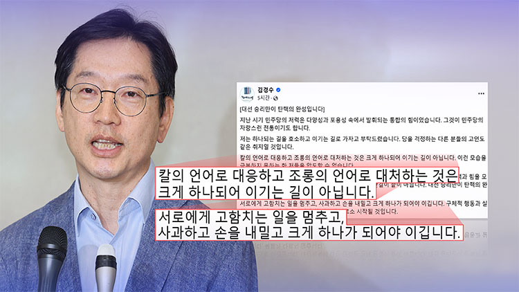 김경수 전 경남지사는 29일 이재명 더불어민주당 대표를 향해 "민주당 안에서 먼저 통합과 포용이 구현되면 크게 하나 돼 이기는 길의 첫걸음이 될 것"이라고 했다.