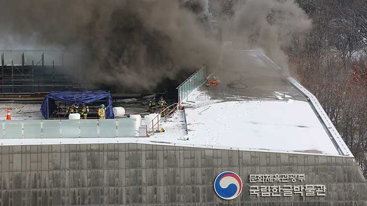 오늘 아침 서울 용산구 국립한글박물관에서 불이 나 아직 꺼지지 않고 있습니다. 문화재 소실 피해는 없지만 소방대원 1명이 다쳤습니다. 자세한 상황 사회부 연결해서 알아보겠습니다.