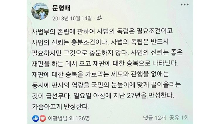 2018년 문형배의 '좋은 재판'…이광범 '좋아요'