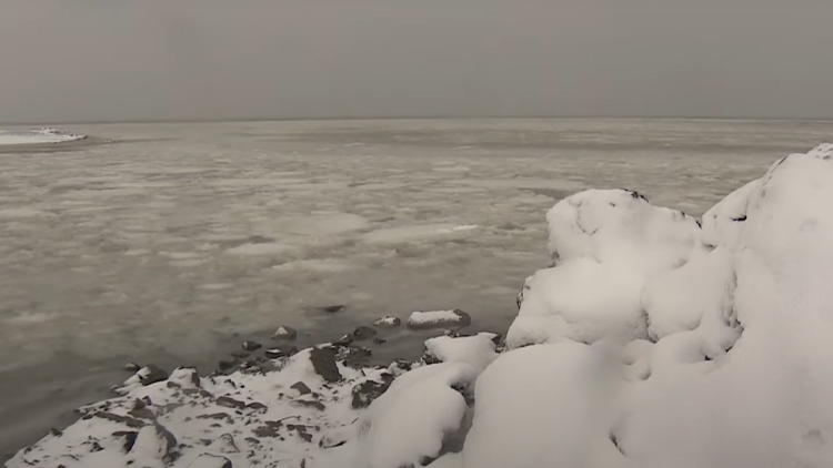 두꺼운 외투를 입은 여성이 조심조심 길을 걷습니다. 거리 곳곳엔 아직 녹지 않은 눈이 그대로 쌓여있습니다