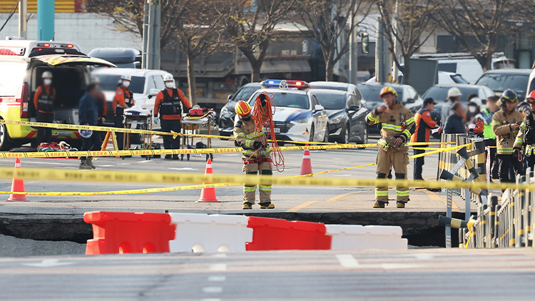 이 사고로 도로 위에서 안전진단 등의 작업을 하던 2명이 지하에 고립됐는데, 1명은 연락조차 되지 않고 있습니다.