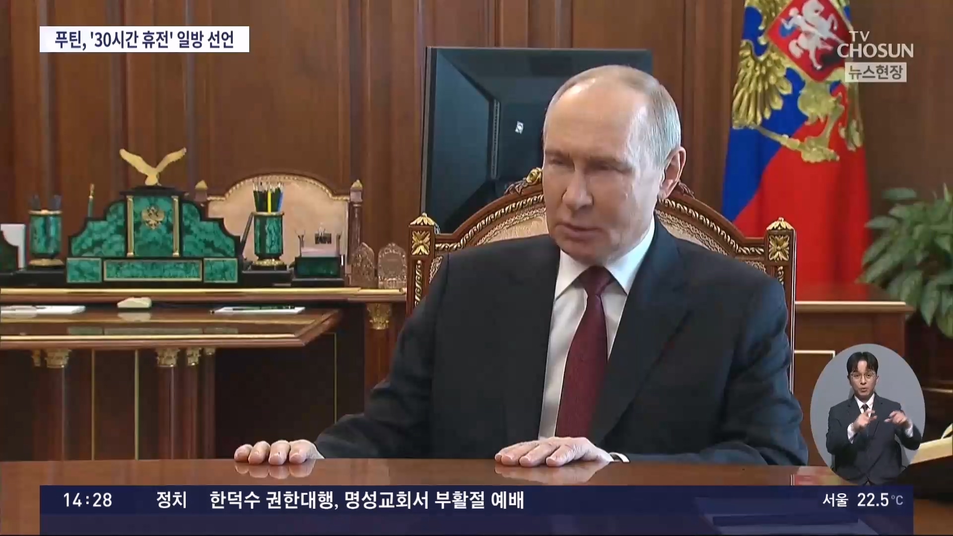 앞서 블라디미르 푸틴 러시아 대통령은 모스크바 현지 시간으로 19일 오후 6시부터 21일 0시까지 30시간 휴전을 선언했다.