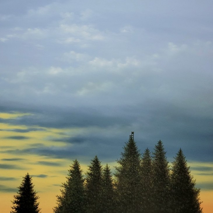민율 작가는 하늘과 바람 사이 나무에 놓인 마음의 쉼터를 그린다. 나무들 위에 작은 의자 하나는 바람이 불거나 비가 와도, 서늘하거나 어두운 밤이어도 상관없다. 조금은 위태롭고 쓸쓸해 보여도 마음 한 조각도 같이 놓아두었으니 바람과 함께 천천히 흔들려 보는 것도 나쁘지 않다. 오히려 그 흔들림 속에 작가가 건네는 따스한 작은 위로가 느껴진다.