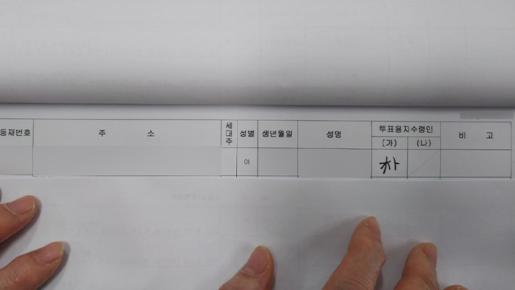 앞서 오늘(3일) 오전 7시쯤 안양시 동안구 달안동 제2투표소(달안초등학교 체육관)를 찾은 30대 여성은 자신의 선거인명부 투표용지 수령란에 '朴(박)'이라는 한자 서명이 적혀 있는 걸 발견했다.