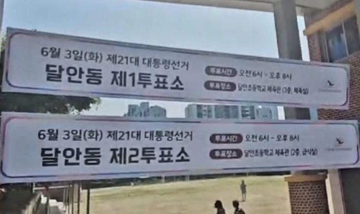 달안초등학교 체육관 건물 3층에는 달안동 제1투표소, 2층엔 달안동 제2투표소가 있다.
