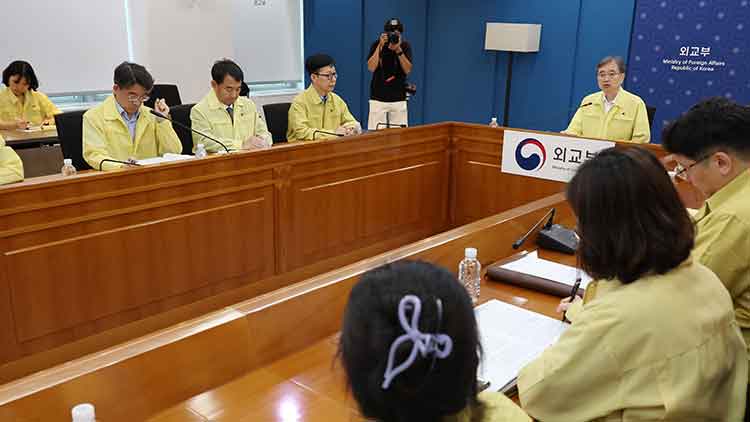 "(이곳에 한국인들 체포돼 있나요?) 당신이 어떤 이야기를 하는지 알고 있는데, 홍보팀을 통해서 알아보세요."