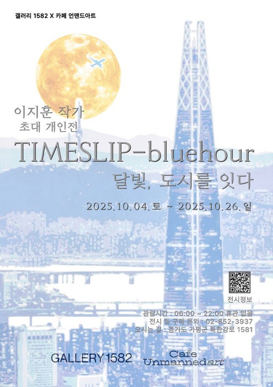 경기도 가평군 청평면에 위치한 복합문화공간 갤러리 1582×카페 언맨드아트가 10월26일까지 이지훈 작가 ‘TIMESLIP - bluehour : 달빛, 도시를 잇다’전을 연다.
