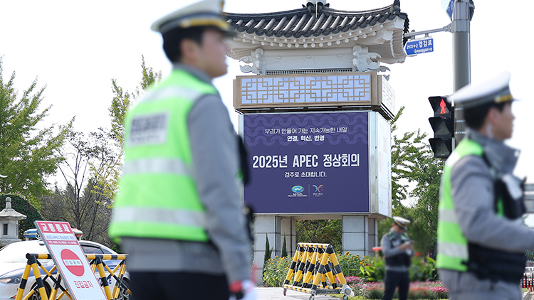 행사장이 둘러싸고 있는 보문 호수엔 해경 특수기동정이 투입됐고, 드론 운항도 전면 금지되면서 그야말로 '육해공'이 모두 통제됐습니다.