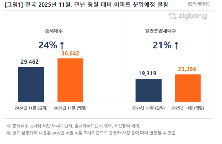 3일 직방에 따르면 2025년 11월 전국 아파트 분양 예정 물량은 총 3만 6,642가구로 집계됐다.
