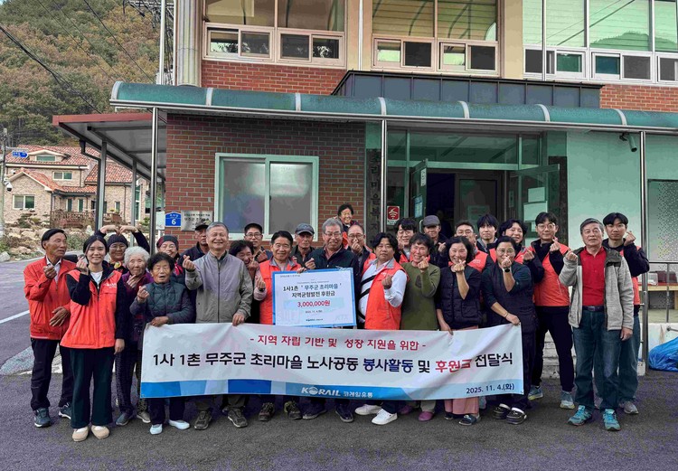 5일 코레일유통은 전날부터 임직원들이 전라북도 무주군 초리마을을 방문해 일손 돕기와 환경 정비 활동을 펼치고 지역발전기금 300만 원을 전달했다고 밝혔다.