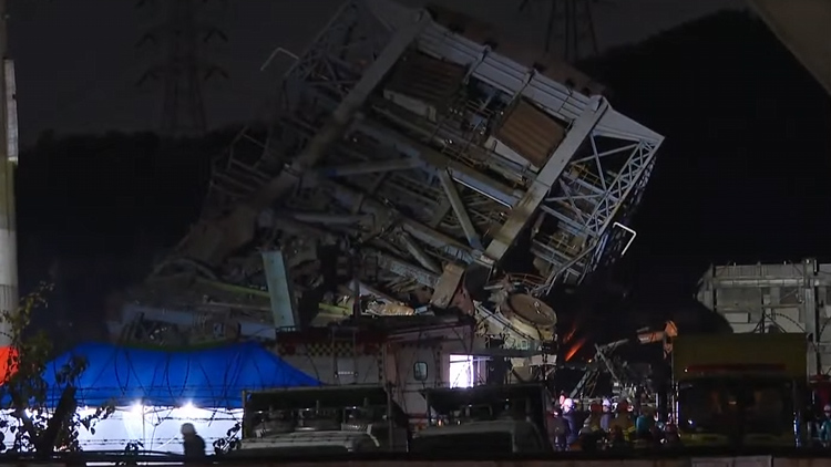 무너진 잔해더미는 철구조물들이 휘어지고 뒤엉켜 안이 보이지 않을 정도입니다.