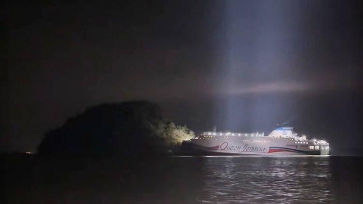 제주에서 출발해 목포로 향하던 여객선 퀸제누비아2호가 전남 신안군 장산면 장산도 남쪽 무인도인 족도에 좌초했다는 신고가 19일 오후 8시 17분쯤 해경에 접수됐다.