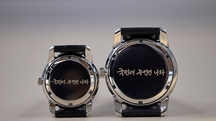 대통령실, 李 대통령 손목 시계 공개…뒷면엔 '국민이 주인인 나라' 李 글씨체로 새겨