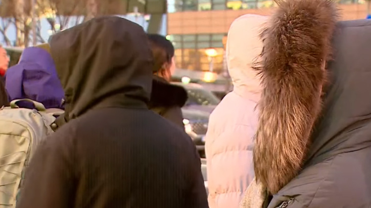 상인들은 한파에 눈이 얼어버릴까봐 밀고 쓰느라 바쁩니다.