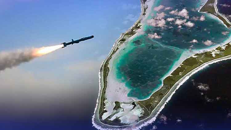 미사일이 깜깜한 밤하늘을 가르며 도시 한가운데로 떨어집니다.